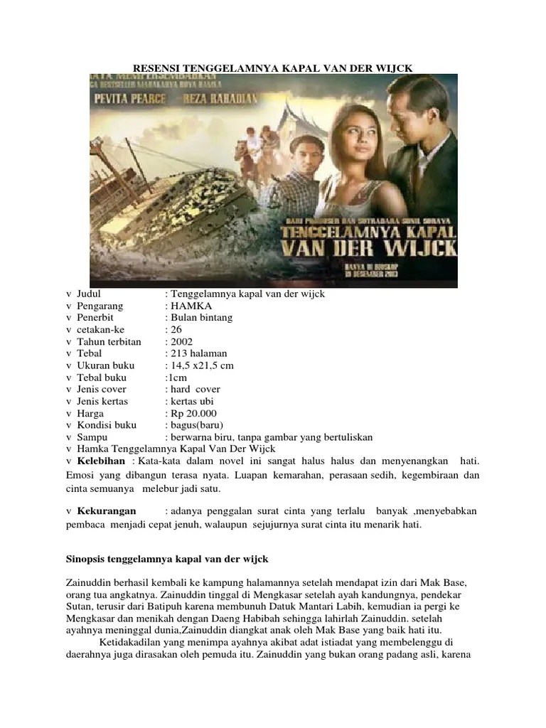 Tenggelamnya kapal van der wijck. Resensi novel tenggelamnya kapal van der wijck tugas bahasa, kelas xii ipa sma muhammadiyah 7 yogyakarta, hpmw jogja . Arum novitasari 20 september 2021, 11:12 wib. Selangormembaca #resensibuku2021#kgimembaca #malaysiamembaca#dudukrumah #bacadirumah#stayathome #readathome. 2017 ( cetakan 1 ).