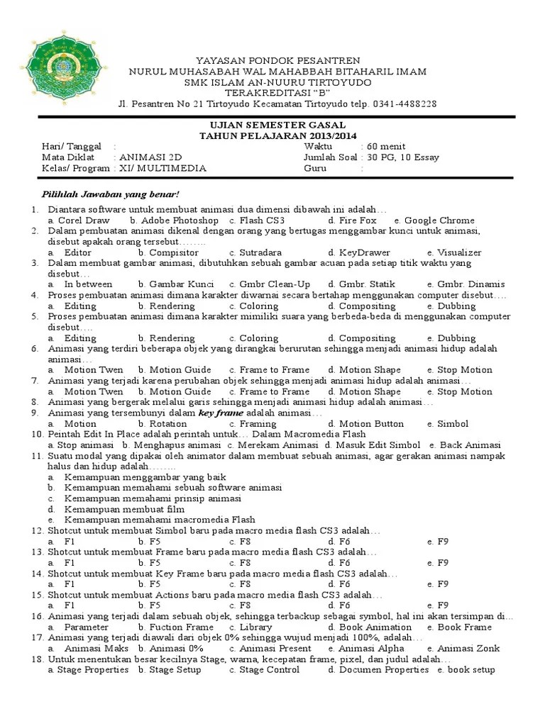 Soal Animasi 2D Smk : Soal Uas 2d Dan 3d Multimedia Kelas 11 Beinyu Com : Animasi 2d,animasi 3d,dan animasi kartun.
